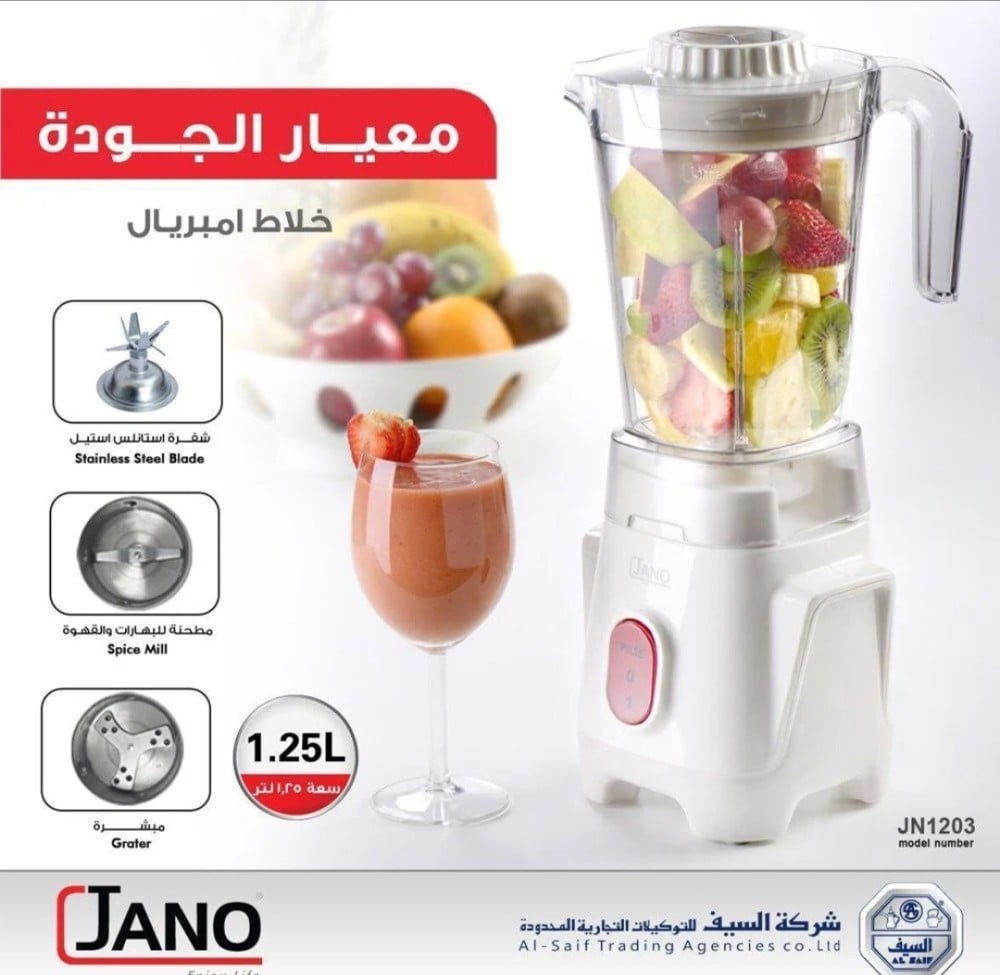 لا يخلو مطبخ من الخلاط الكهربائي فكما نعلم أن هناك الكثير من الأكلات اللذيذة و أيضا العصائر و الحلويات لا يمكن صنعها إلا بإستخدام الخلاط, يأتي هذا الخلاط بمفتاح تشغيل سهل الإستعمال و بقوة 400 واط و سعة الكأس 1.5 لتر مصنوعة من البلاستيك. كما يتضمن مطحنة من الفولاذ المقاوم للصدأ لطحن البهارات.